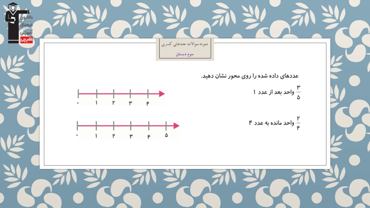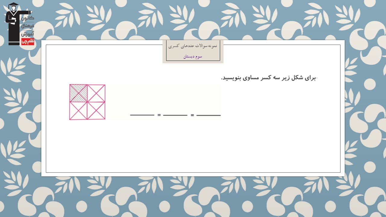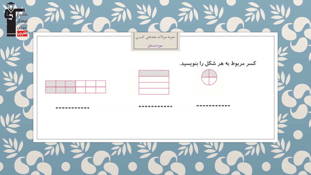 نمونه سوالات فصل سوم ریاضی سوم دبستان (عددهای کسری)- 5 سوال