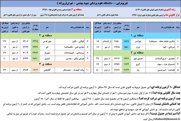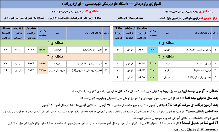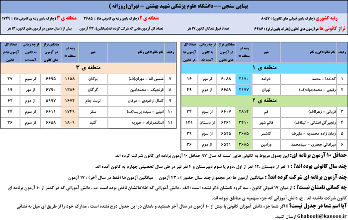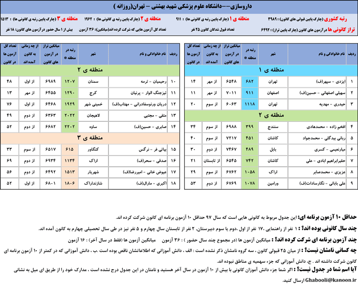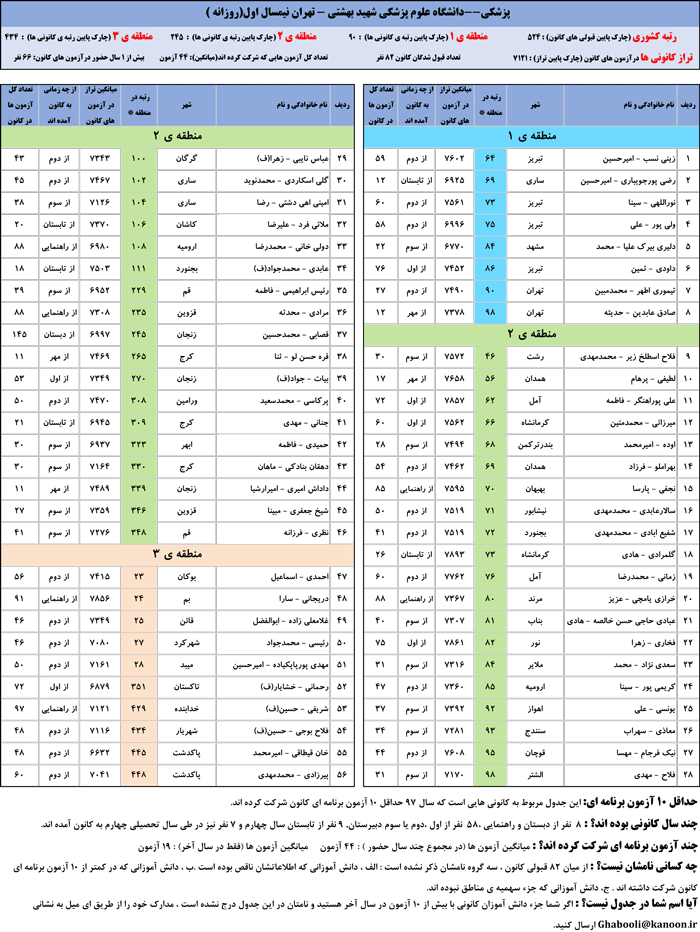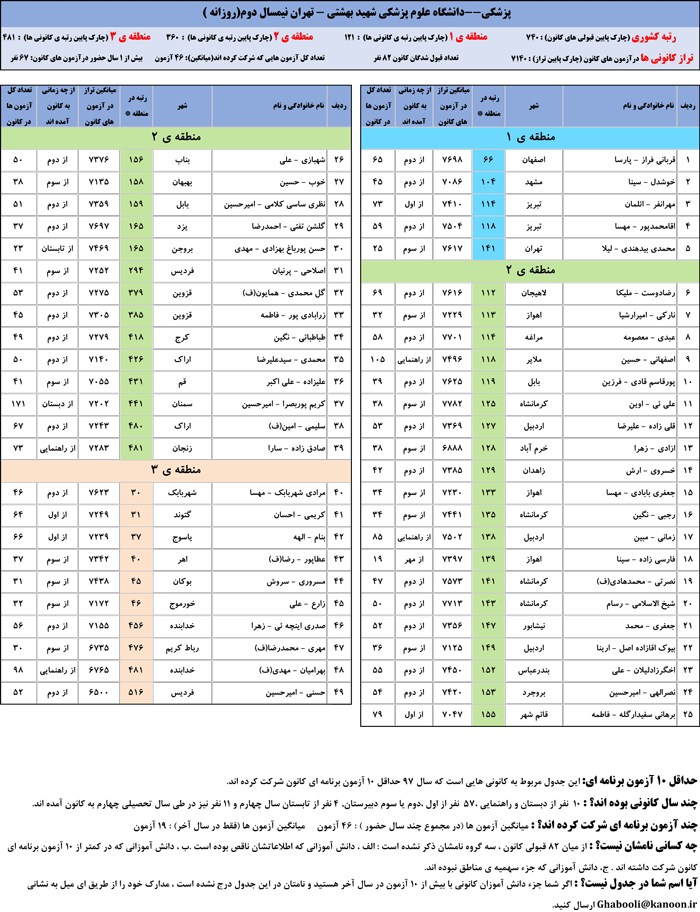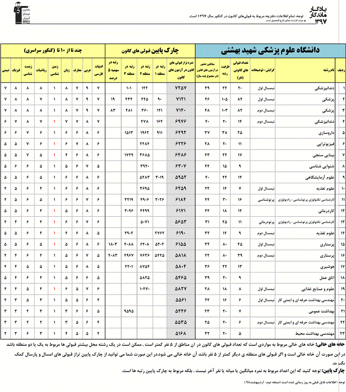 یادگار ماندگار : قبولی های کانونی دانشگاه علوم پزشکی شهید بهشتی در همه رشته ها در سال های 96 و 97 ادامه مشاهده کنید.