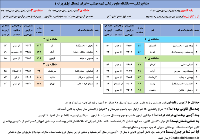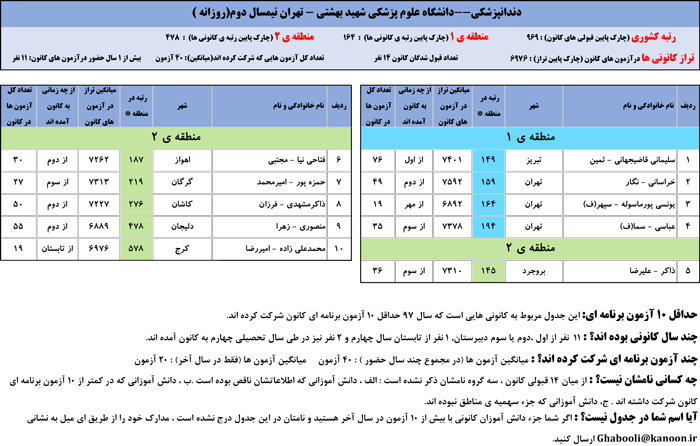 یادگار ماندگار : قبولی‌های کانونی علوم پزشکی بهشتی (96 و 97)