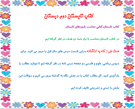 کتاب تابستان دوم دبستان کتاب تابستان-کتاب کار-ریاضی -ریاضی دوم دبستان-ریاضی دوم ابتدایی-فارسی دوم دبستان-فارسی دوم ابتدایی
