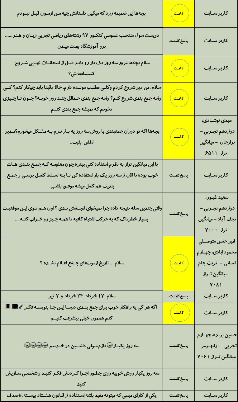 در این دسته از کامنت ها سوالات اصلی دانش آموزان این گونه بود :