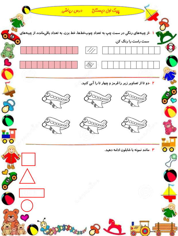 همراهان عزیز اول دبستان در تصاویر زیر نمونه سوالات ریاضی اول دبستان را برای شما قراردادیم تا با حل این سؤالها برای آزمونهای پایان سال آماده شوید.دانشآموزان در کنار خودارزیابی میتوانند با نحوه سوالات امتحانی آشناشوند.