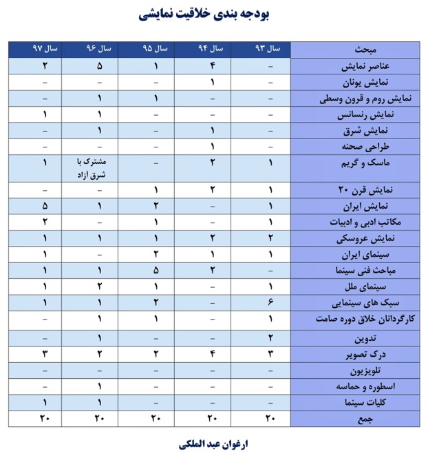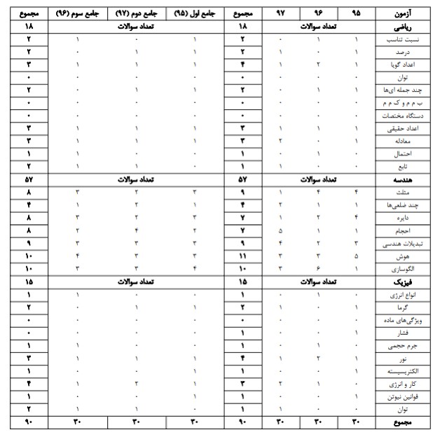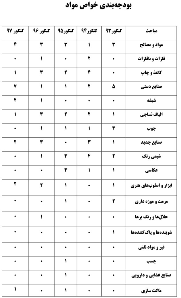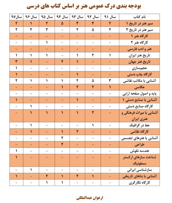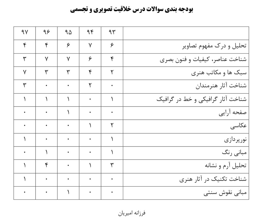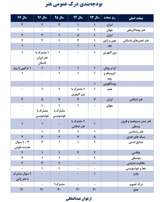 بودجه بندی مباحث کنکور هنر در چند سال گذشته