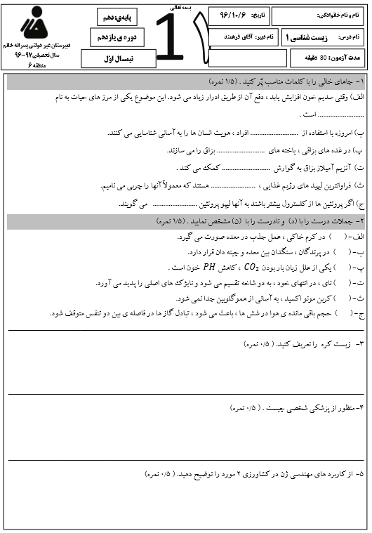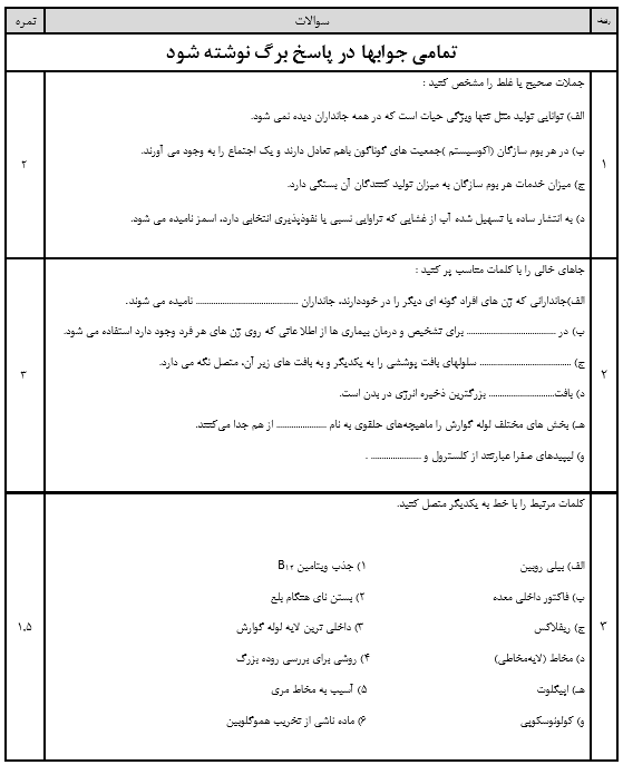 سلام به دوستان عزیز دهمی در این قسمت نمونه سوال امتحانی زیست شناسی دهم ویژه آمادگی امتحان پایانی برای شما دوستان آماده شده است.