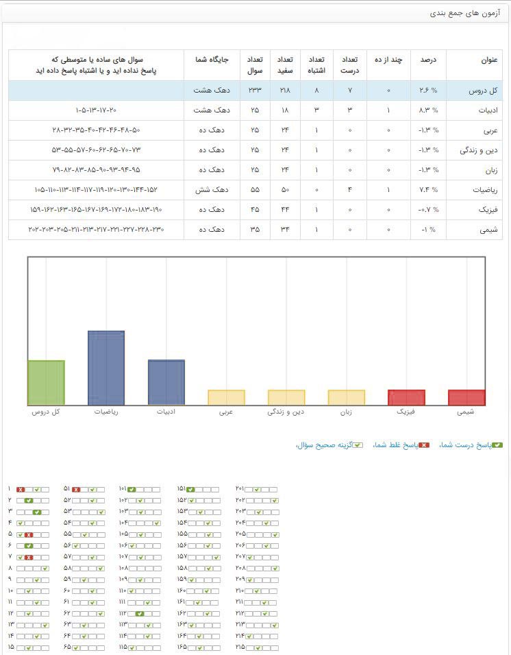 این نشان می دهد شما در دهک چندم قرار دارید و وقتی ستون بالاتر است یعنی در دهک بالاتری هستید و برعکس و این به شما نشان می دهد در کدام قسمت ها نیاز دارید بیشتر کار کنید. این مطالب بعد از جمع آوری تمام داده ها یعنی بعد از 24 ساعت به دانش آموزان ارائه می شود.