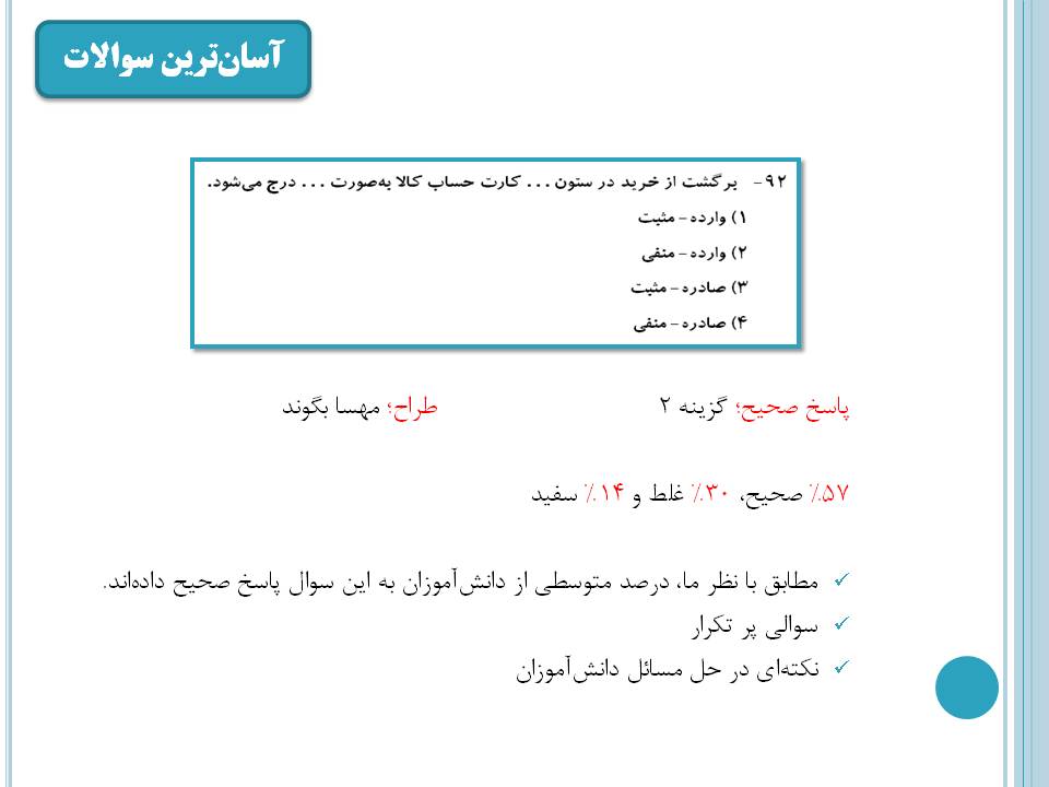 تحلیل آزمون 13 اردیبهشت دهم حسابداری مهسا بگوند- مسئول درس دهم حسابداری