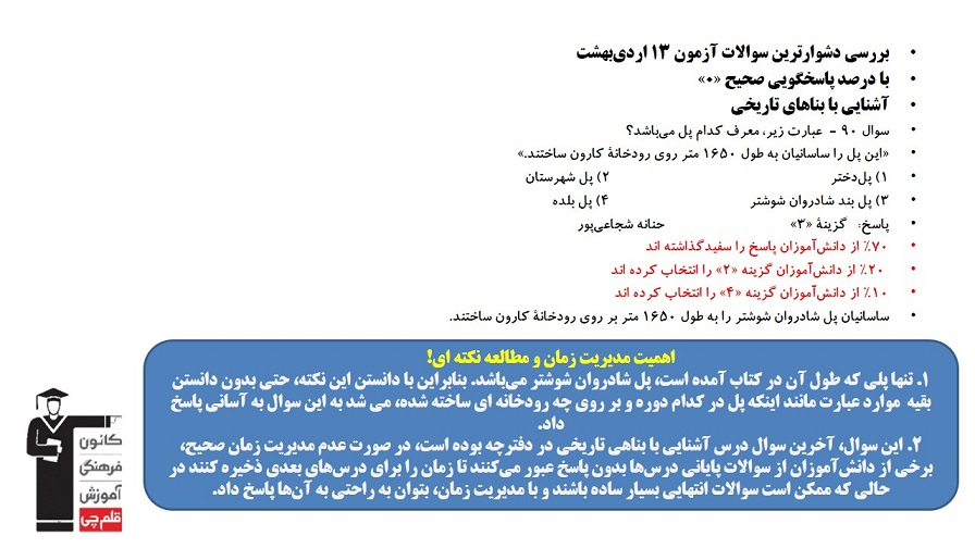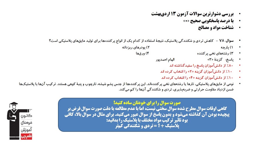 بررسی دشوارترین سوالات آزمون 13 اردیبهشت با درصد پاسخگویی صحیح «0» و علتیابی و مرور نکاتی که در آزمونهای بعدی به پاسخگویی به اینگونه سوالات کمک میکنند