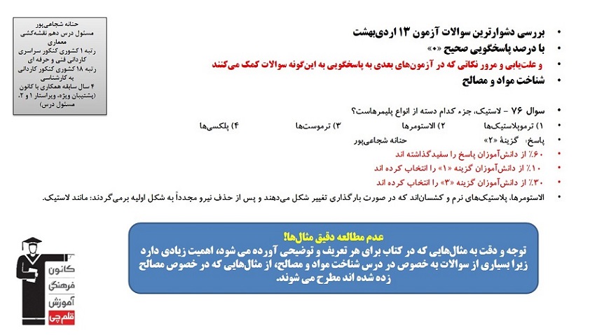 تحلیل و بررسی دشوارترین سوالات آزمون 13 اردیبهشت دهم معماری