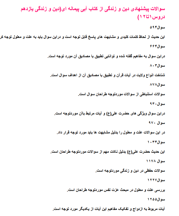سوالات پیشنهادی دین و زندگی یازدهم منطبق باآزمونهای جمع بندی