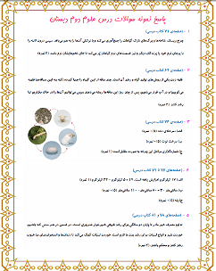 همراهان عزیز دوم دبستان در فایل های pdf زیر نمونه سوالات تشریحی علوم دوم دبستان، مباحث بسازيم و لذّت ببريم و سرگذشت دانه و درون آشيانهها و من رشد مي كنم را به همراه پاسخ تشریحی آنها را برای شما قراردادیم.