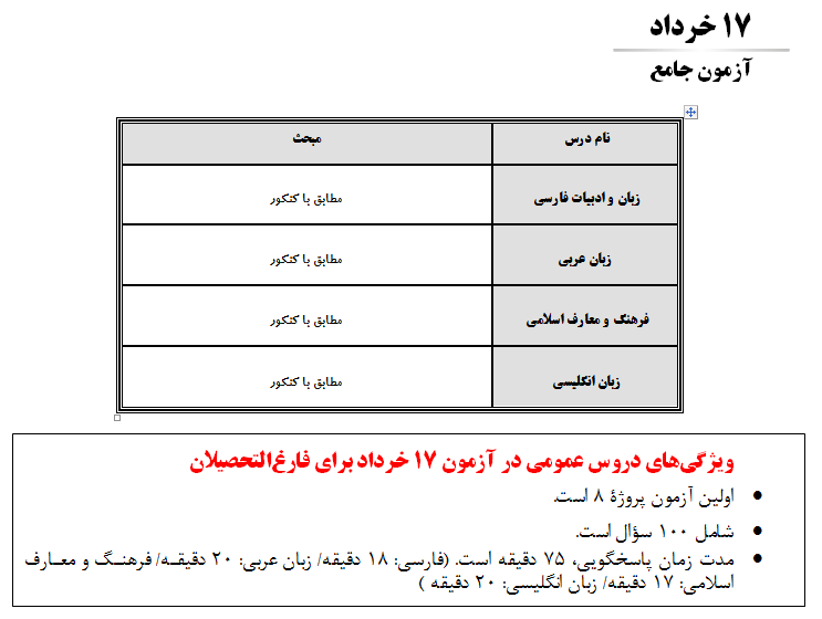 ویژگی دروس عمومی در آزمون 17 خرداد