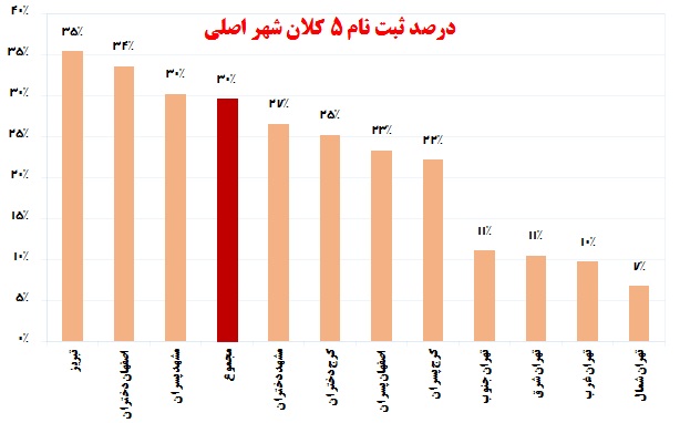 7 تا 11 درصد ، میزان ثبت نام 4 منطقه تهران می باشد.