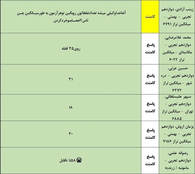 ابتدا بخشی از گفتگوهای شما در سایت کانون در مورد تعداد پاسخ های غلط آزمون را میبینیم: