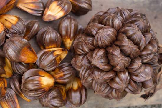 این میوه در سنگاپور یافت میشود. از ساقه برگهای آن به عنوان بام برای کلیه ها استفاده میشود و دانههای آن به ژله تبدیل شده و به عنوان دسر استفاده میشود. متاسفانه این میوه در حال انقراض است.