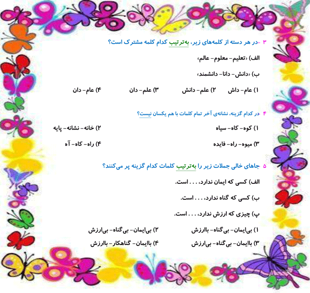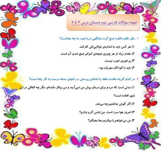 همراهان عزیز دوم دبستان در تصاویر زیر نمونه سوالات درس سوم تا ششم فارسی دوم دبستان را برای شما قراردادیم.