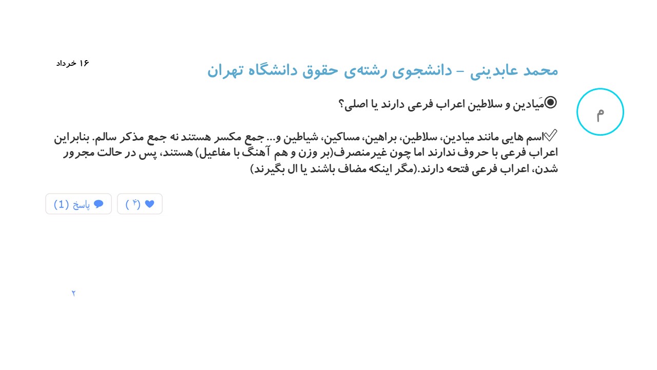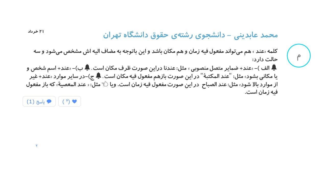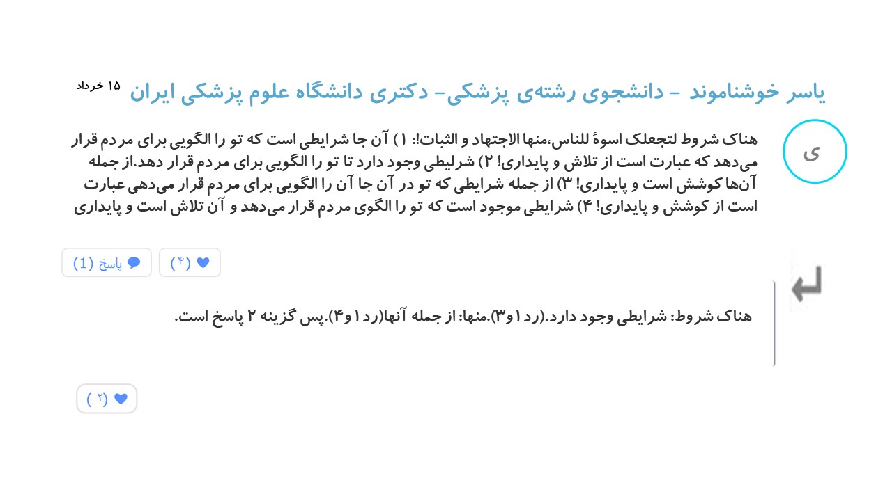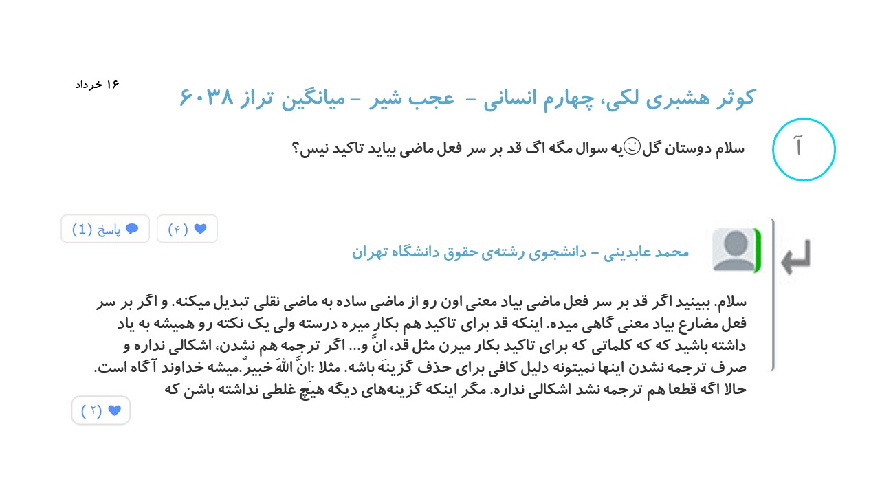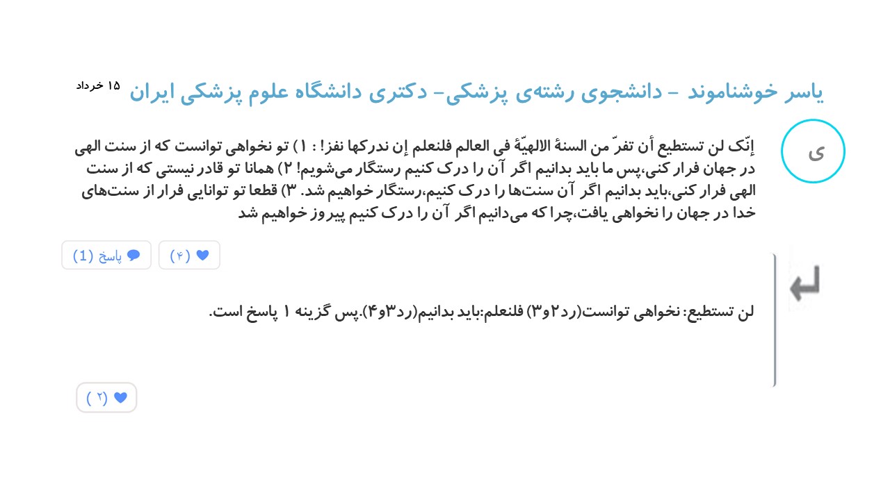 در ادامه بررسی کامنتهای علمی شما در سایت کانون ، چند پرسش مربوط به درس عربی که توسط رتبههای برتر پاسخ داده شده اند را برایتان آماده کرده ایم .