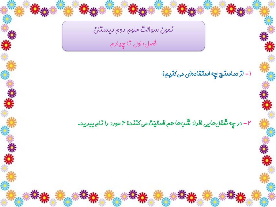 همراهان عزیز دوم دبستان در تصاویر زیر نمونه سوالات درس اول تا چهارم رابه همراه پاسخ تشریحی آنها برای شما قراردادیم.