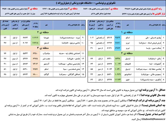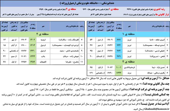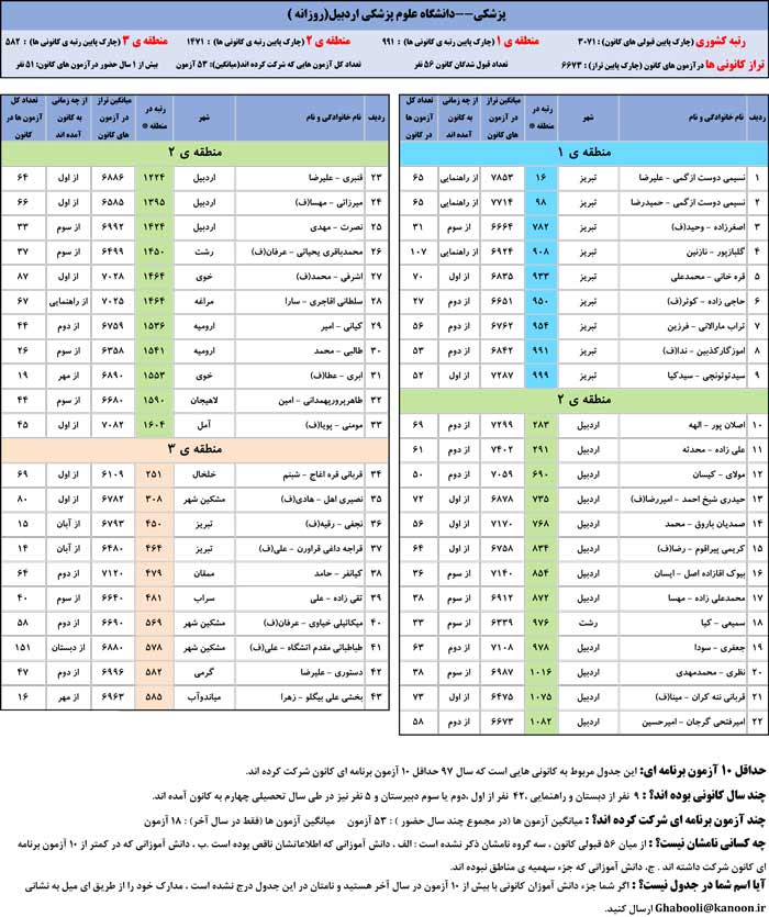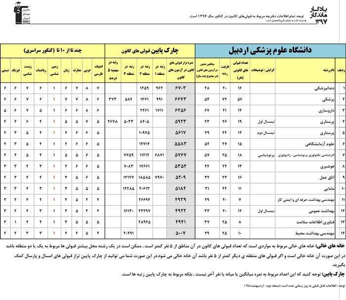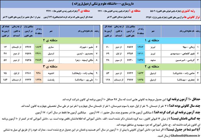 یادگار ماندگار : قبولی های کانونی دانشگاه های اردبیل در همه رشته ها در سال 97 را در ادامه مشاهده کنید.فایل با کیفیت قبولی های سال 97 را در قسمت فایل های ضمیمه دانلود کنید.