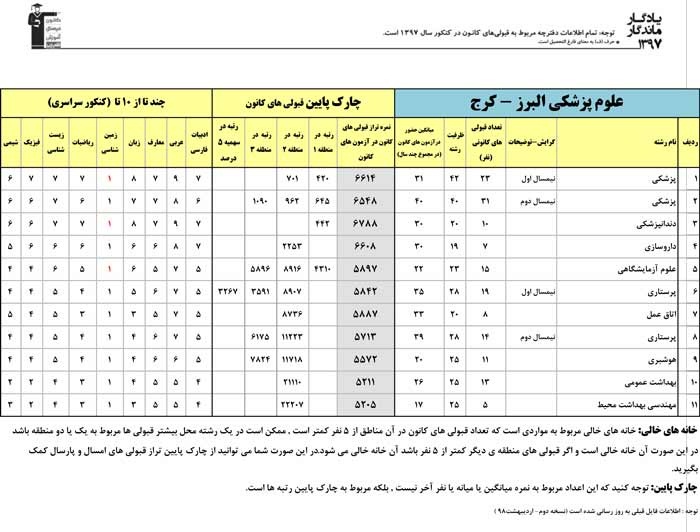 یادگار ماندگار : قبولی‌های کانونی دانشگاه علوم پزشکی البرز - کرج در همه رشته‌ها در سال 97 را در ادامه مشاهده کنید.