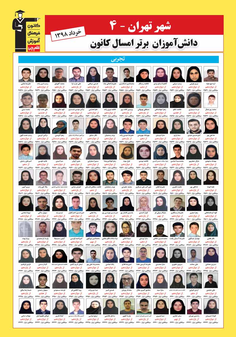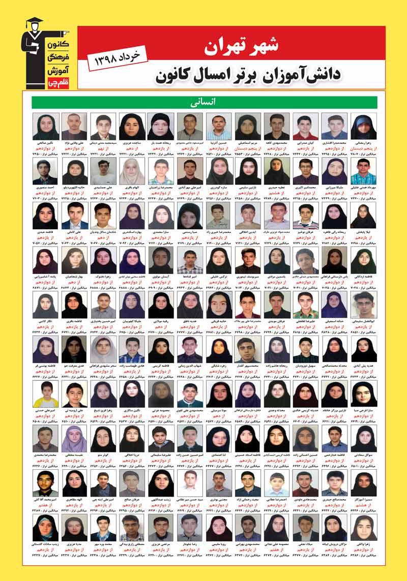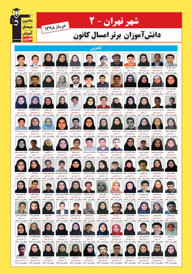 ویژه نامه ی برترها که شامل دانش آموزان برتر کنکوری سال 98 کانون در شهر تهران است را در ادامه مشاهده و دانلود کنید.