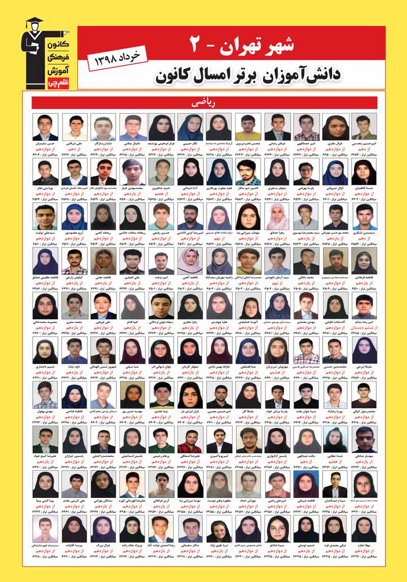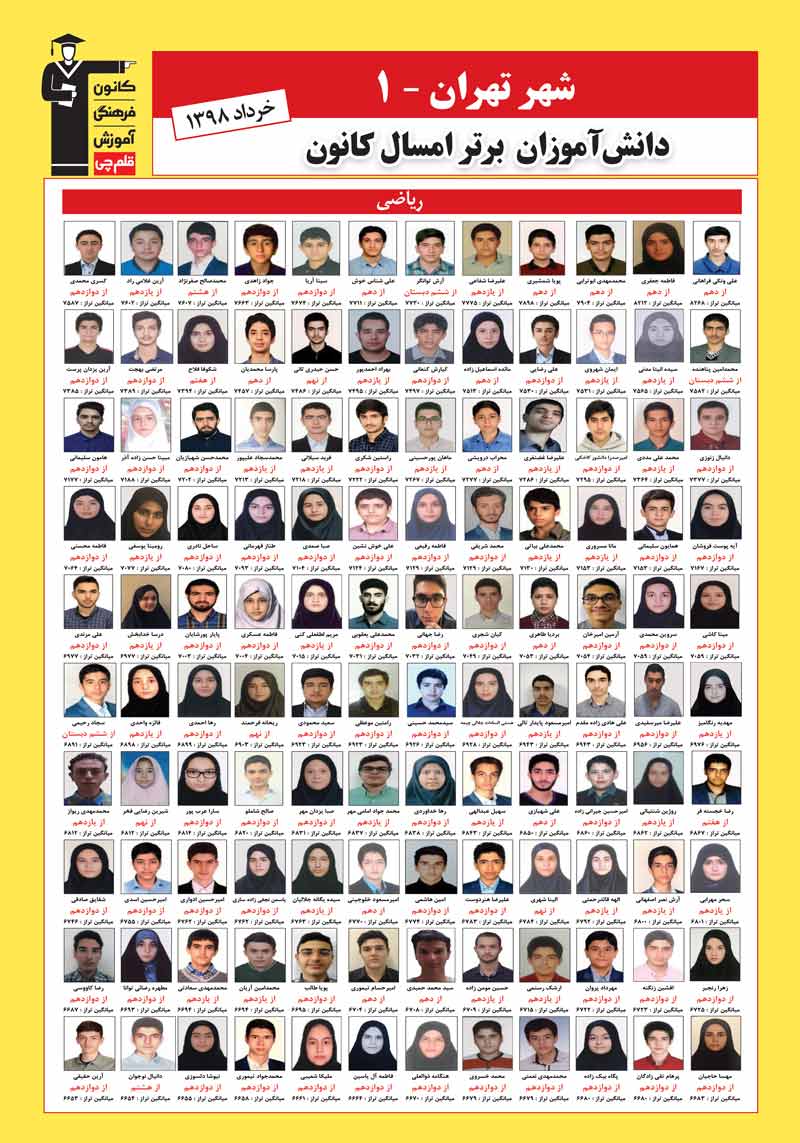 فایل اسامی برترهای فاقد عکس شهر تهران و فایل های با کیفیت را در قسمت فایل های ضمیمه دانلود کنید.