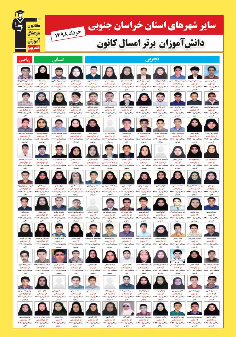 ویژه نامه ی برترها که شامل دانش آموزان برتر کنکوری سال 98 کانون در سایر شهرهای استان خراسان جنوبی است را در ادامه مشاهده و دانلود کنید.