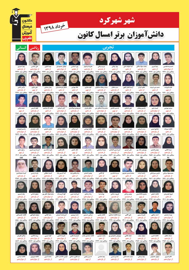 | نفرات برتر سال 98 در شهر شهرکرد |