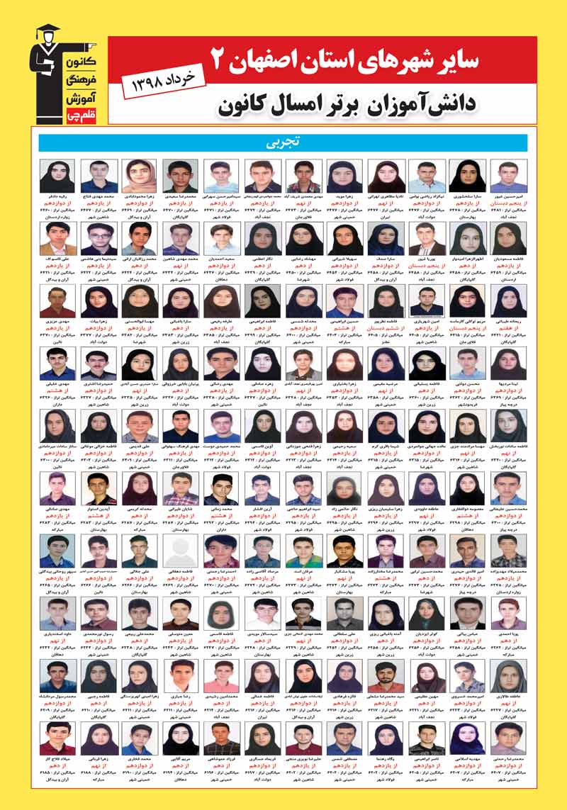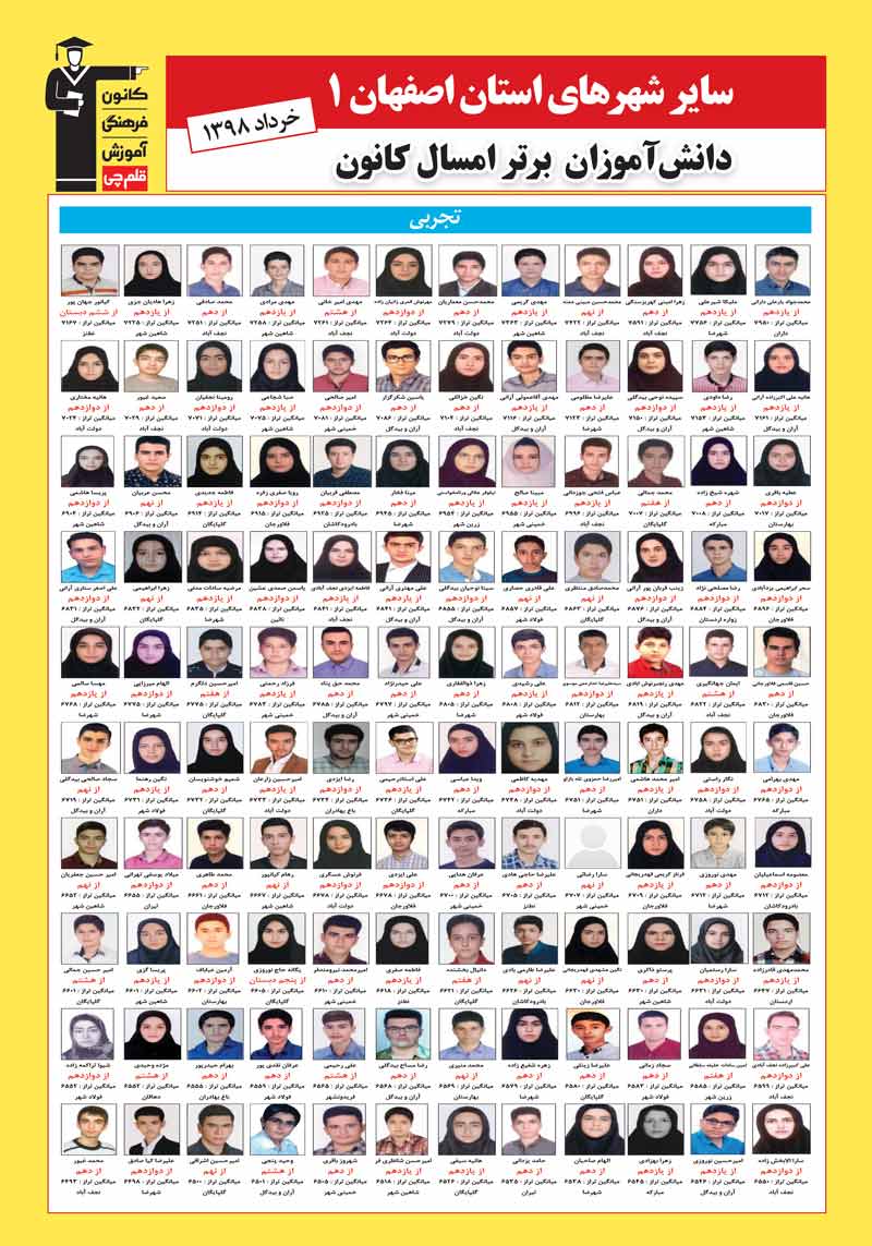 برای مشاهده نفرات برتر سایر گروه های شهرهای استان اصفهان و پروفایل شخصی برترها برروی لینک زیر کلیک کنید.