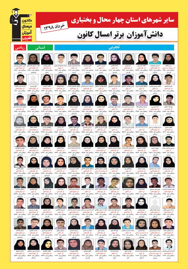ویژه نامه ی برترها که شامل دانش آموزان برتر کنکوری سال 98 کانون در سایر شهرهای استان چهار محال و بختیاری است را در ادامه مشاهده و دانلود کنید.