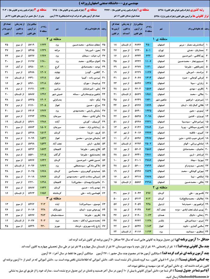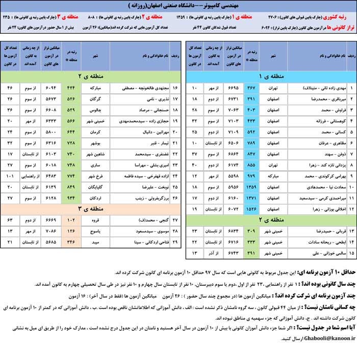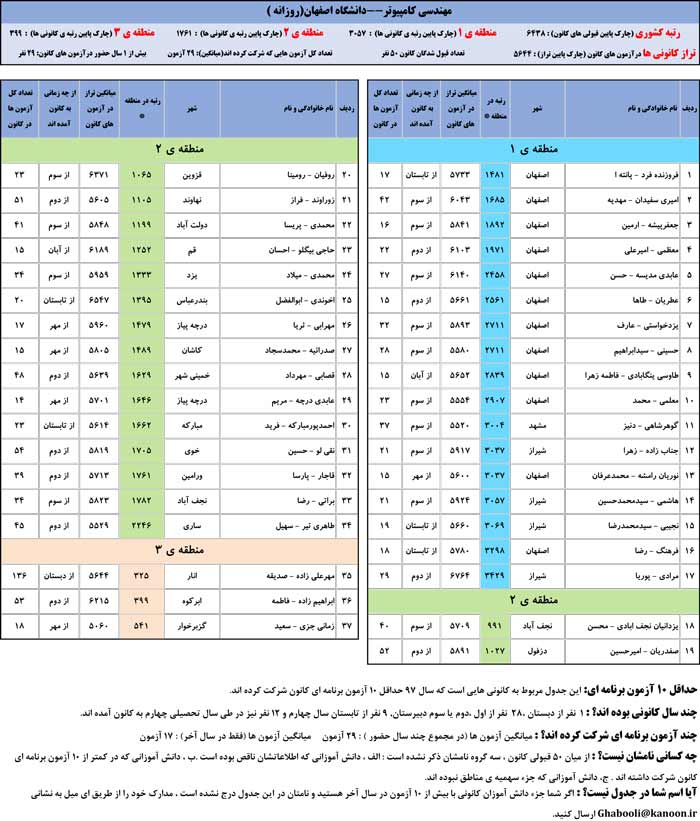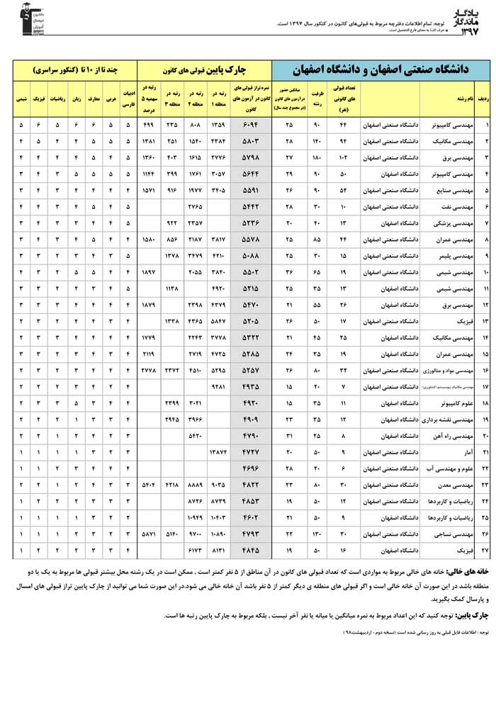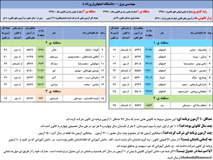 یادگار ماندگار : قبولی های کانونی دانشگاه های اصفهان در همه رشته ها در سال 97 را در ادامه مشاهده کنید.فایل با کیفیت قبولی های سال 97 را در قسمت فایل های ضمیمه دانلود کنید.