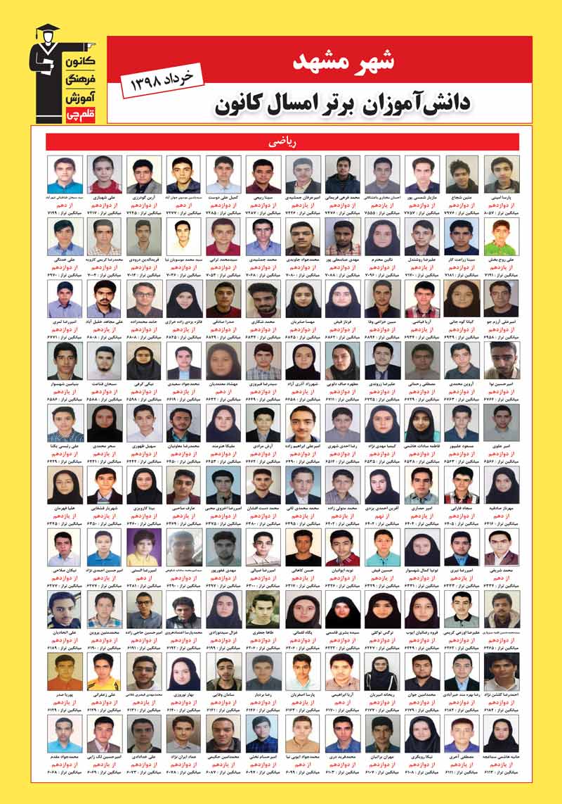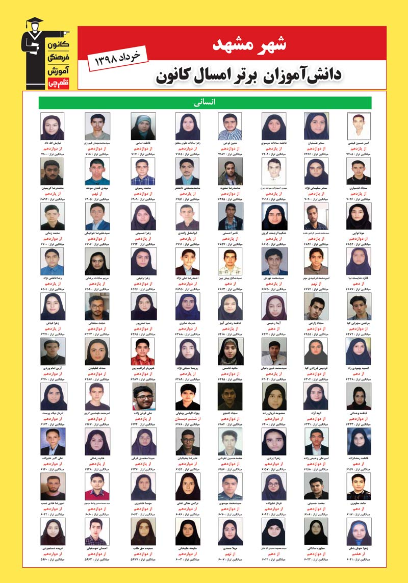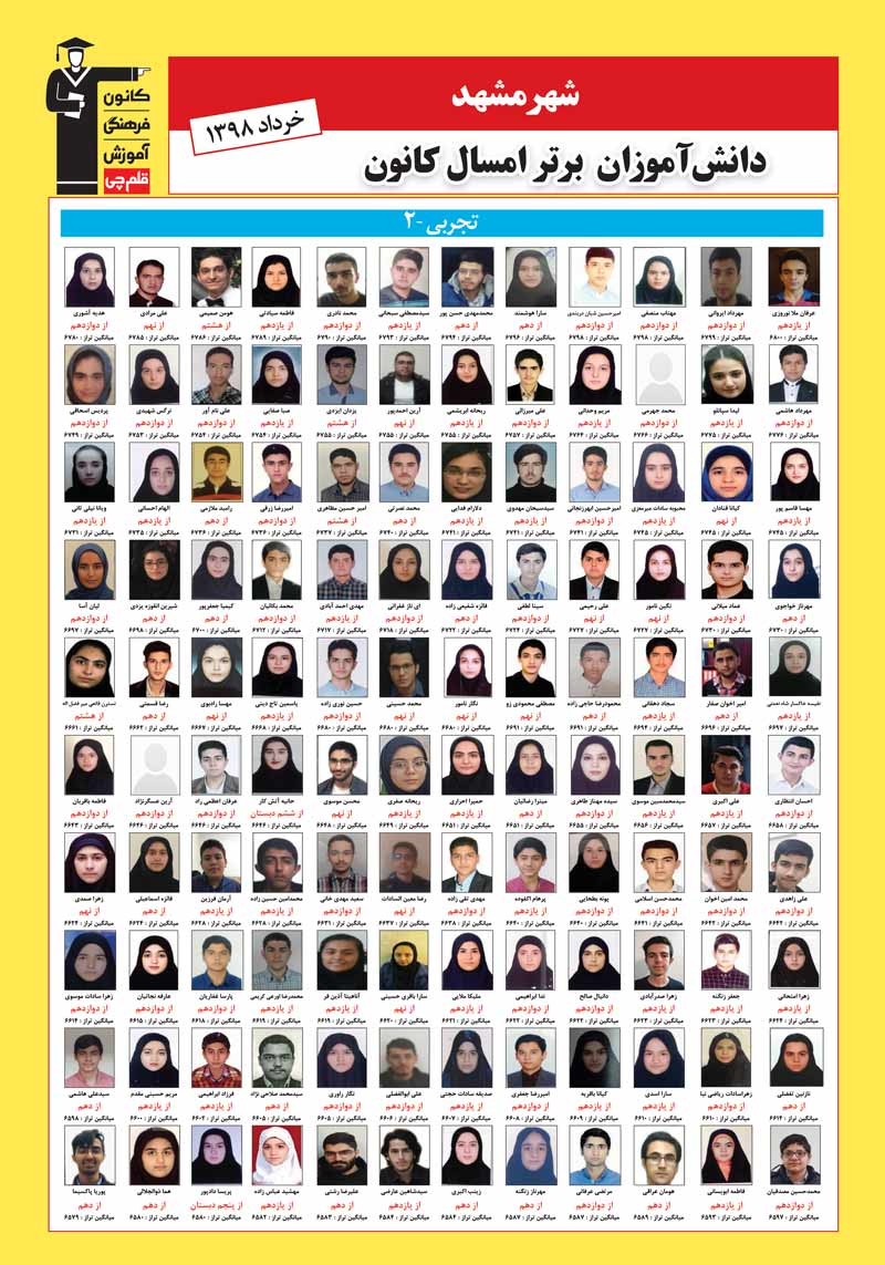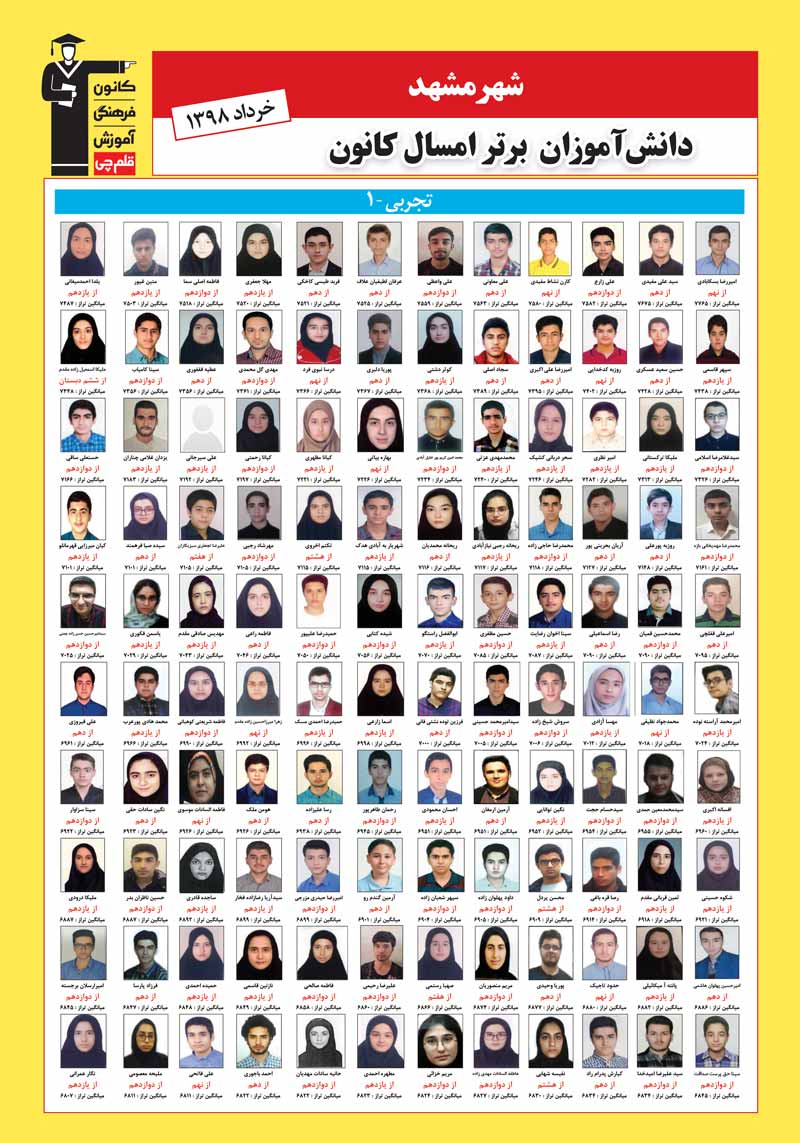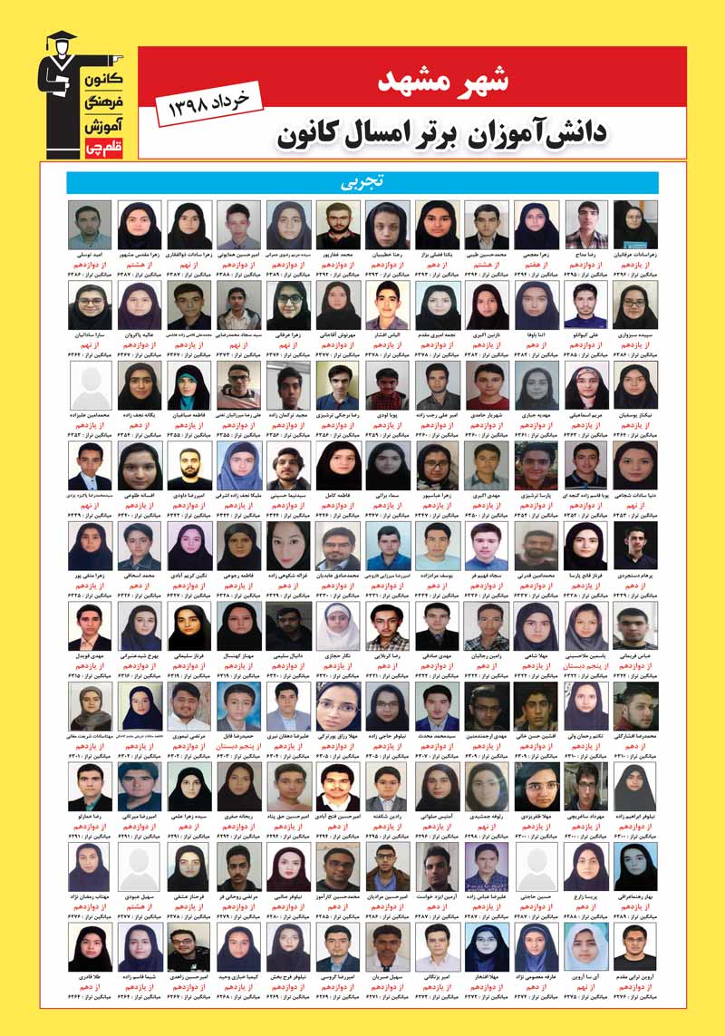 ویژه نامه ی برترها که شامل دانش آموزان برتر کنکوری سال 98 کانون در شهر مشهد است را در ادامه مشاهده و دانلود کنید.