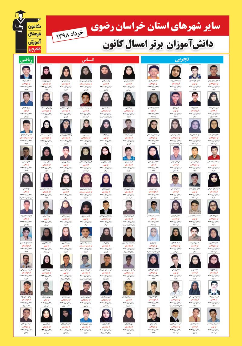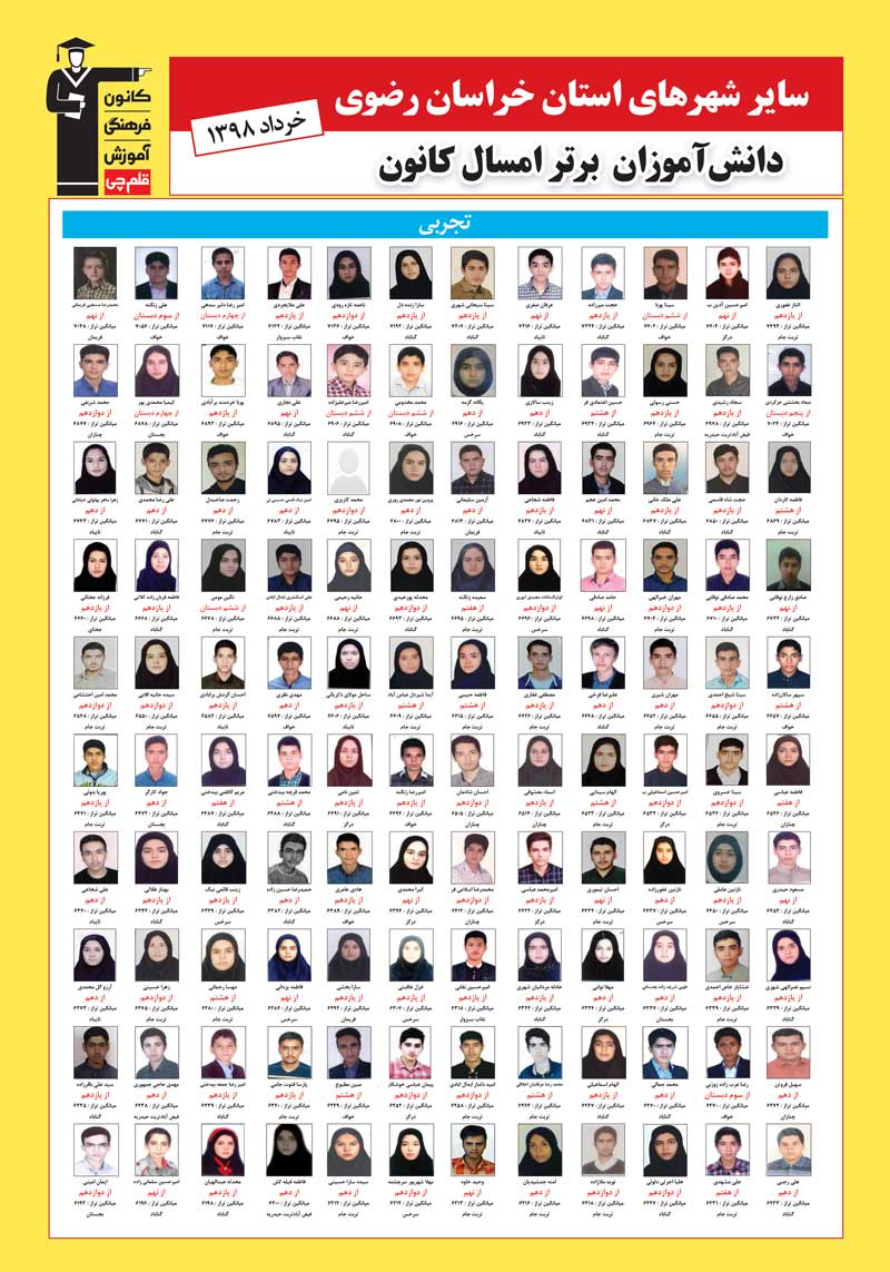 برای مشاهده نفرات برتر سایر گروه های شهرهای استان خراسان رضوی و پروفایل شخصی برترها برروی لینک زیر کلیک کنید.