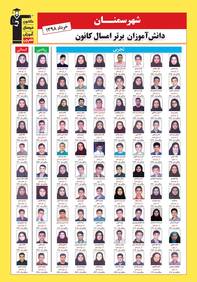 ویژه نامه ی برترها که شامل دانش آموزان برتر کنکوری سال 98 کانون در شهر سمنان است را در ادامه مشاهده و دانلود کنید.