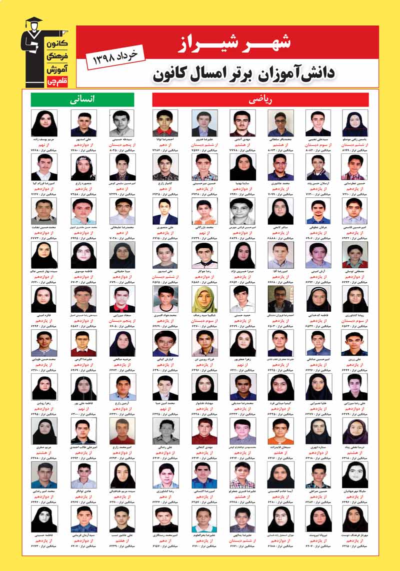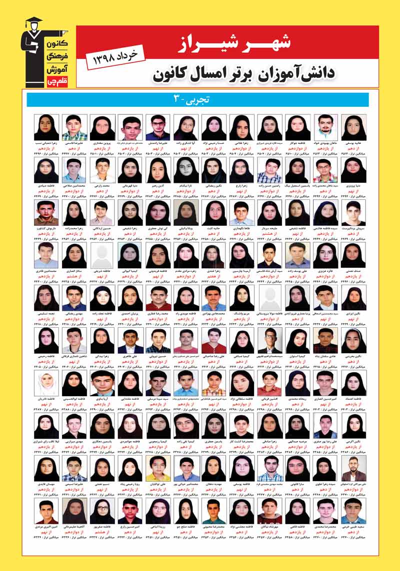 ویژه نامه ی برترها که شامل دانش آموزان برتر کنکوری سال 98 کانون در شهر شیراز است را در ادامه مشاهده و دانلود کنید.