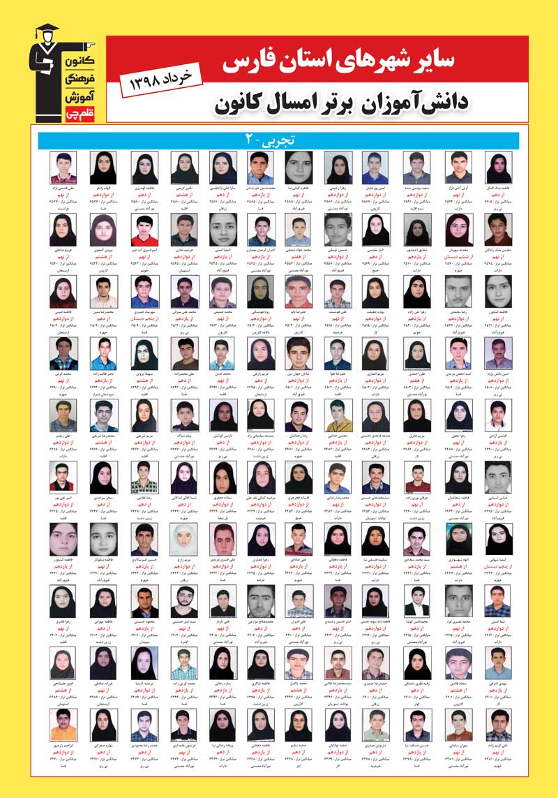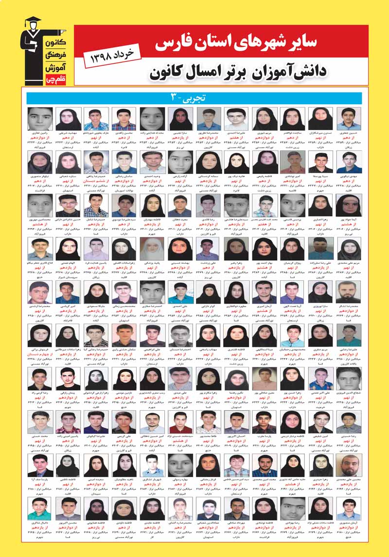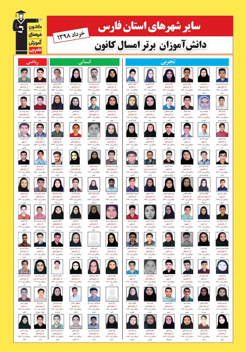 | نفرات برتر سال 98 در شهرهای استان فارس |