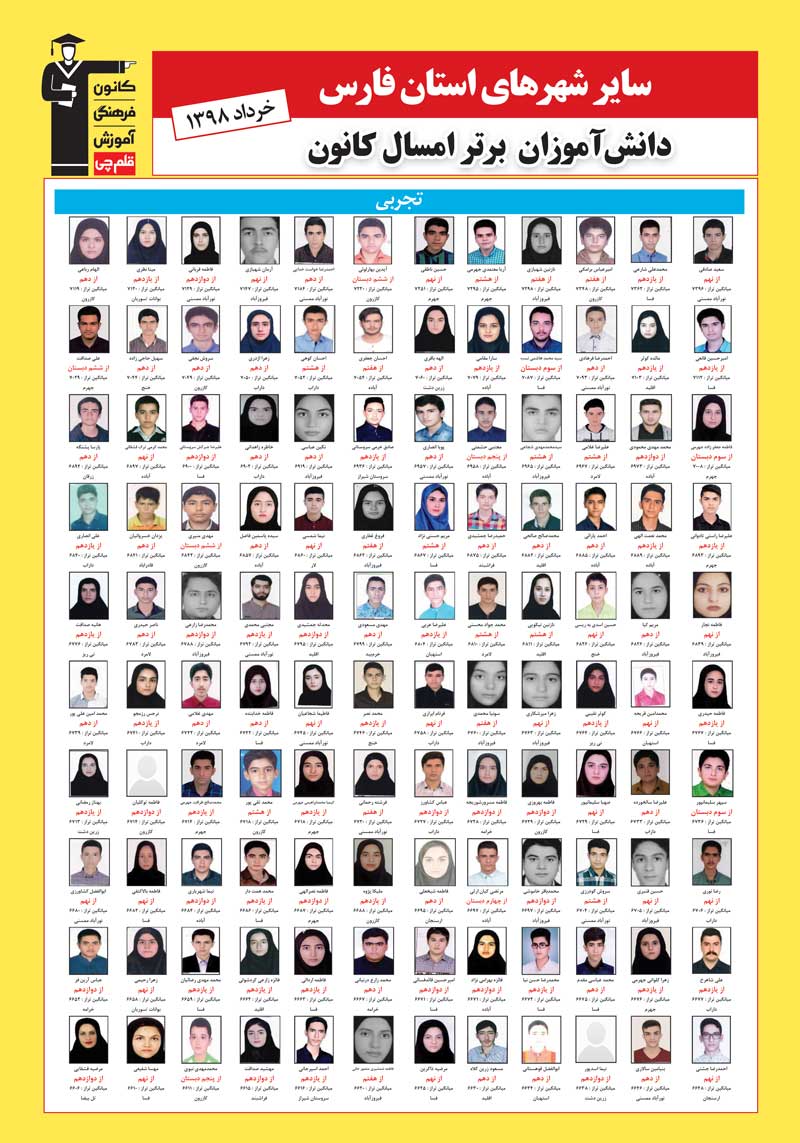 برای مشاهده نفرات برتر سایر گروه های شهرهای استان فارس و پروفایل شخصی برترها برروی لینک زیر کلیک کنید.