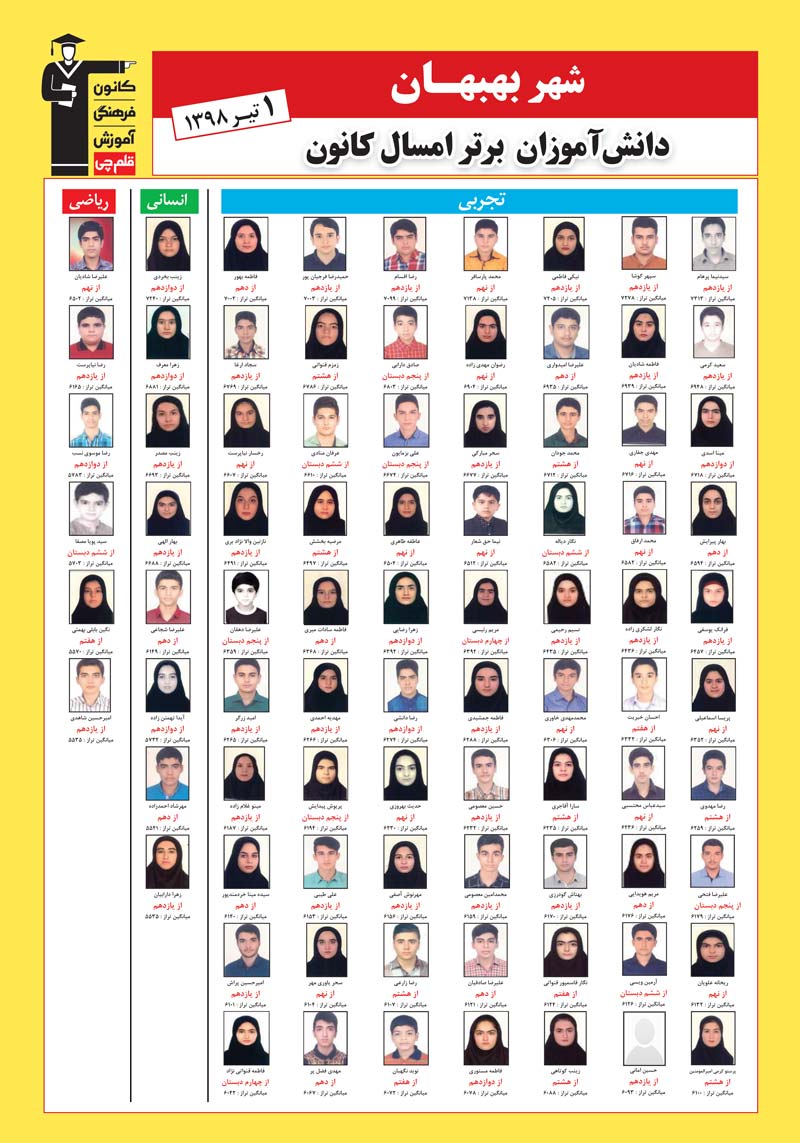 ویژه نامه ی برترها که شامل دانش آموزان برتر کنکوری سال 98 کانون در شهر بهبهان است را در ادامه مشاهده و دانلود کنید.