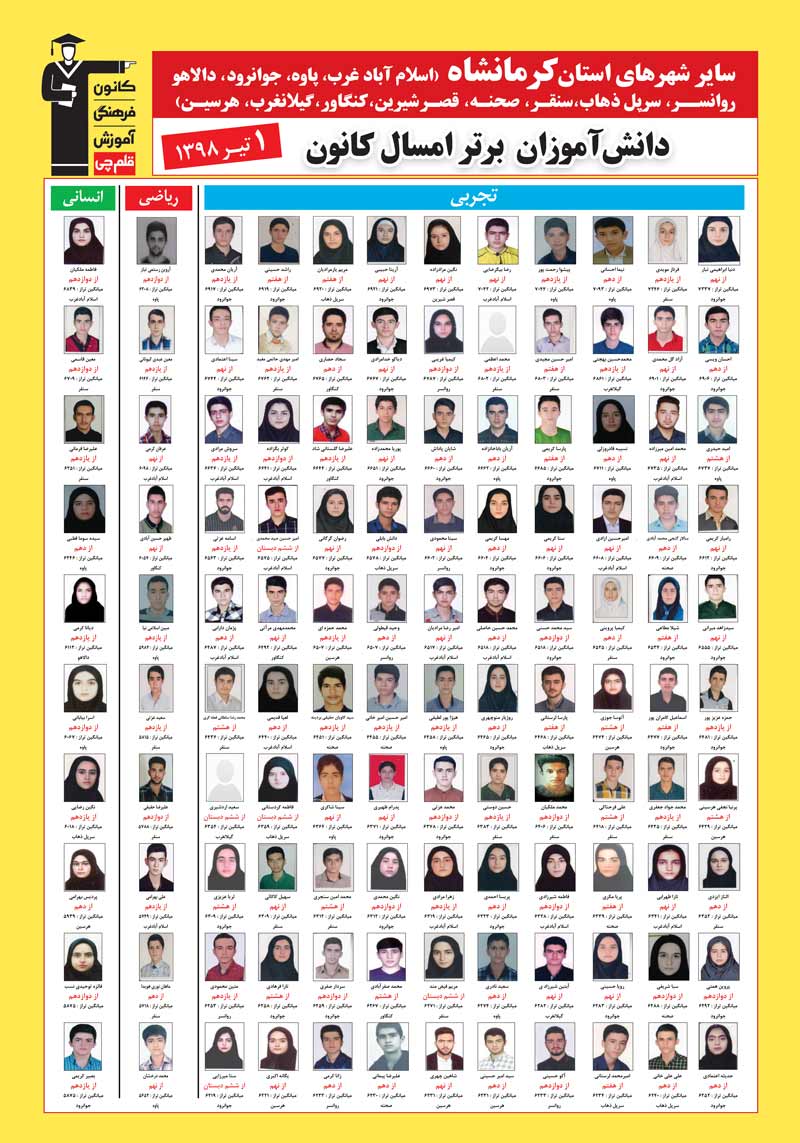 | نفرات برتر سال 98 در شهرهای استان کرمانشاه |