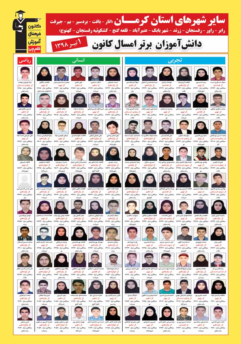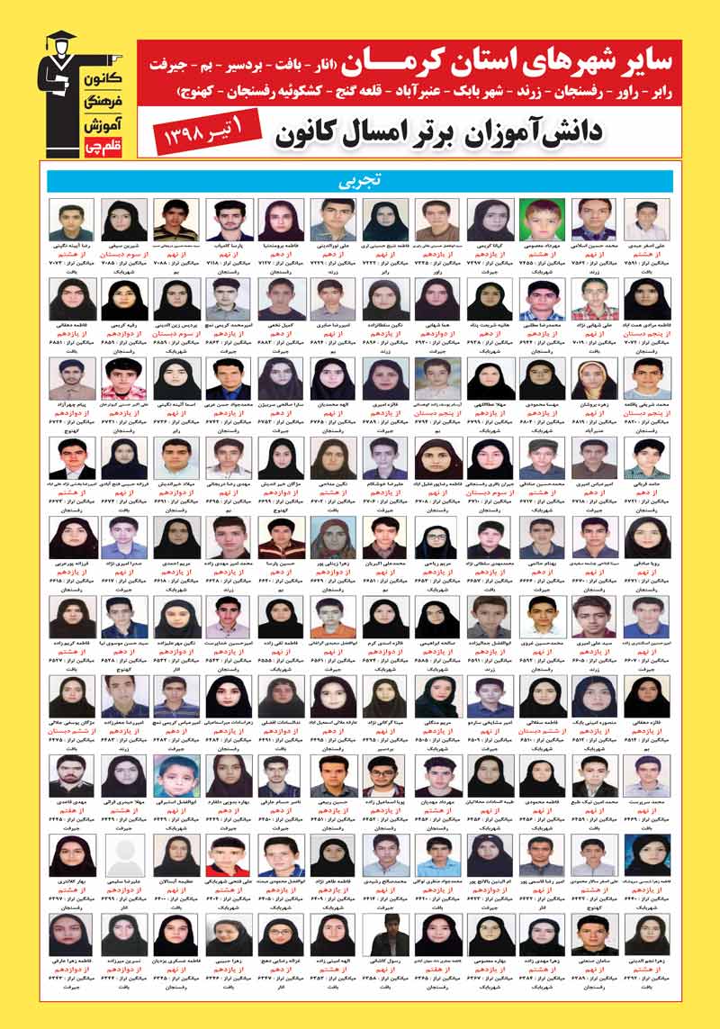 برای مشاهده نفرات برتر سایر گروه های شهرهای استان کرمان و پروفایل شخصی برترها برروی لینک زیر کلیک کنید.