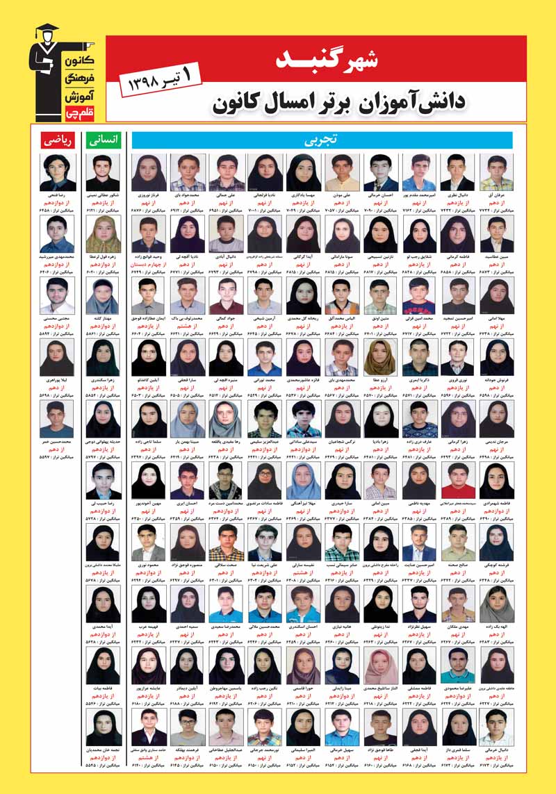 ویژه نامه ی برترها که شامل دانش آموزان برتر کنکوری سال 98 کانون در شهر گنبد است را در ادامه مشاهده و دانلود کنید.