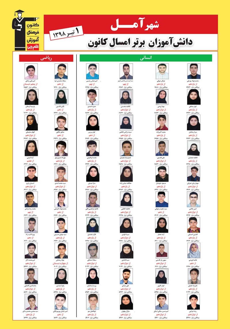 ویژه نامه ی برترها که شامل دانش آموزان برتر کنکوری سال 98 کانون در شهر آمل است را در ادامه مشاهده و دانلود کنید.