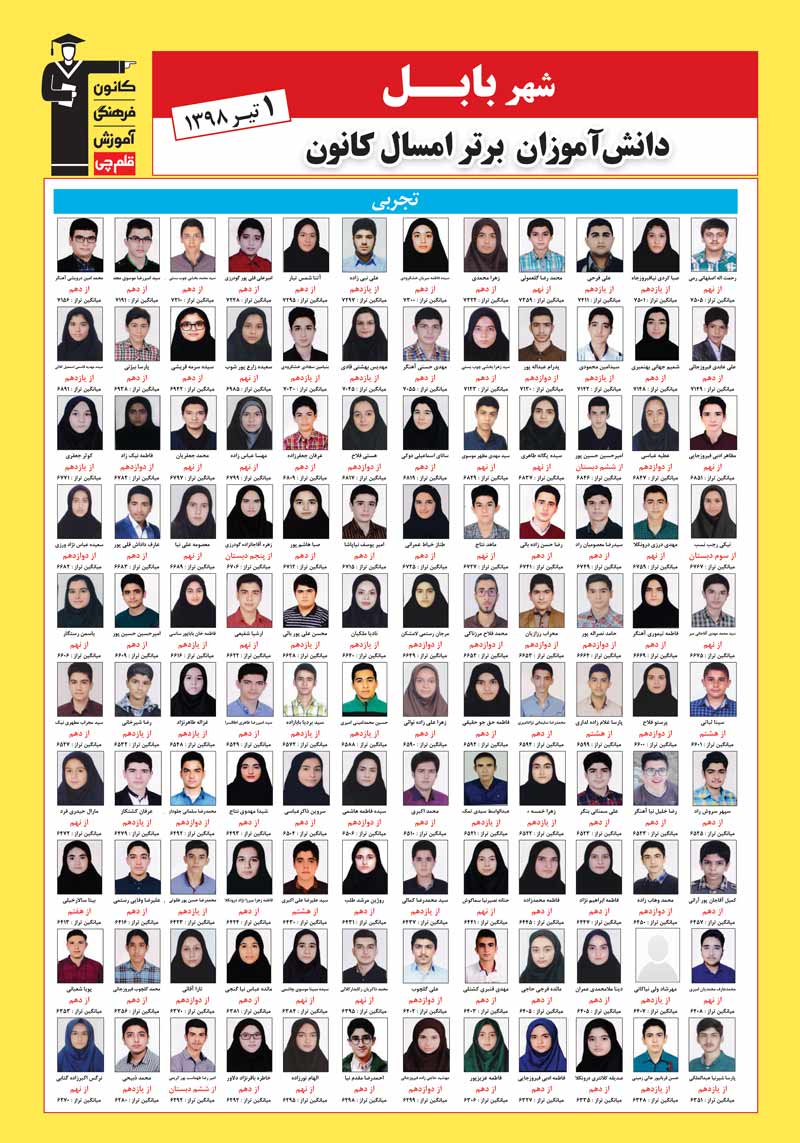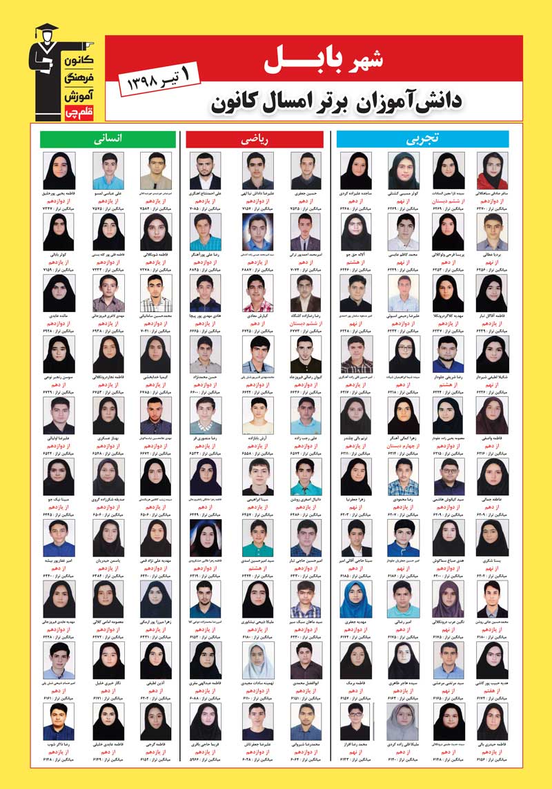 ویژه نامه ی برترها که شامل دانش آموزان برتر کنکوری سال 98 کانون در شهر بابل است را در ادامه مشاهده و دانلود کنید.