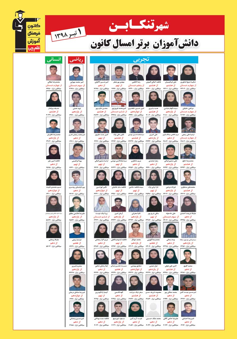 ویژه نامه ی برترها که شامل دانش آموزان برتر کنکوری سال 98 کانون در شهر تنکابن است را در ادامه مشاهده و دانلود کنید.
