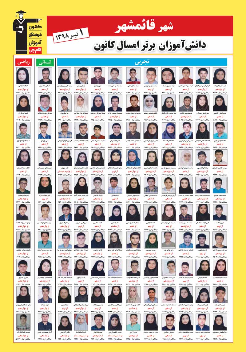 | نفرات برتر سال 98 در شهر قائمشهر |