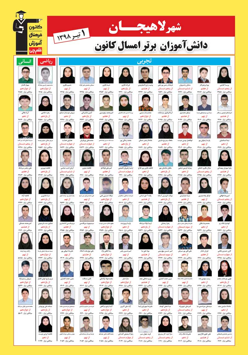 | نفرات برتر سال 98 در شهر لاهیجان |