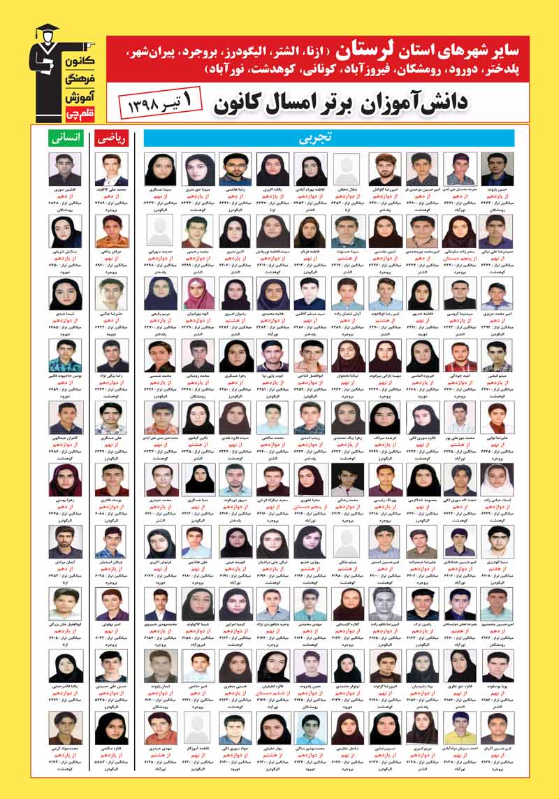 | نفرات برتر سال 98 در شهرهای استان لرستان |