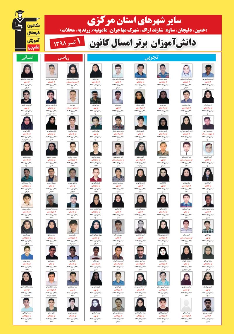 ویژه نامه ی برترها که شامل دانش آموزان برتر کنکوری سال 98 کانون در سایر شهرهای استان مرکزی است را در ادامه مشاهده و دانلود کنید.