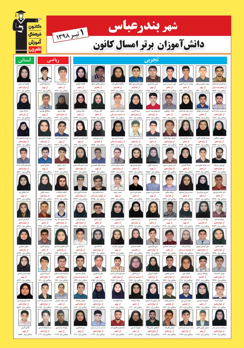 | نفرات برتر سال 98 در شهر بندرعباس |