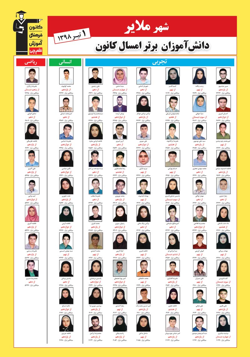 | نفرات برتر سال 98 در شهر ملایر |