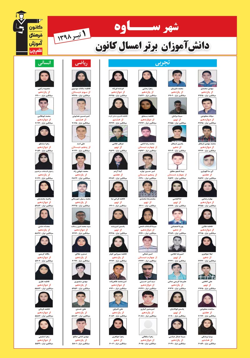ویژه نامه ی برترها که شامل دانش آموزان برتر کنکوری سال 98 کانون در شهر ساوه است را در ادامه مشاهده و دانلود کنید.